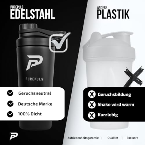 Genieße die Vorteile eines robusten, praktischen und eleganten Edelstahl Protein Shakers, der dein Leben einfacher und gesünder macht!