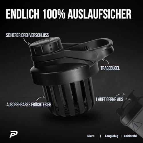 • 100 % auslaufsicher: Mit dem innovativen Schraubverschluss kannst du dir sicher sein, dass dein Drink nicht ausläuft – ideal für Proteinshakes und Isodrinks.