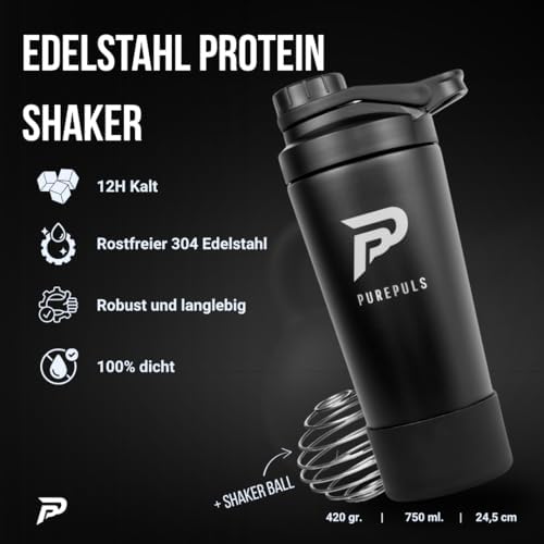 Edelstahl Protein Shaker 750 ml | BPA-frei, doppelwandig isoliert | Auslaufsicher für Sportler | Perfekt für eiskalte ShEdelstahl Protein Shaker 750 ml | BPA-frei, doppelwandig isoliert | Auslaufsicher für Sportler | Perfekt für eiskalte Sh