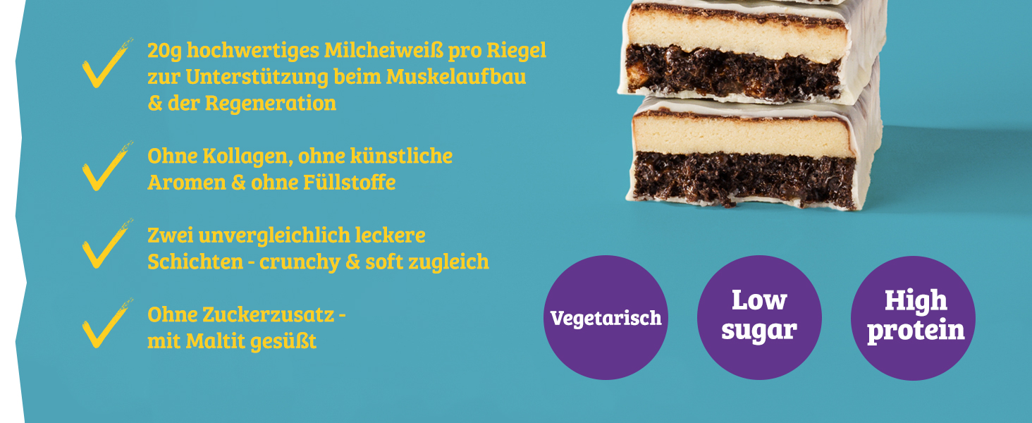 Egal ob im Büro, auf einer Wanderung oder nach einem intensiven Workout – der vegetarische Eiweißriegel passt mühelos in jede Tasche. Er stillt deinen Hunger und deckt deinen Proteinbedarf, wann und wo immer du ihn brauchst. So bist du für alle Herausforderungen des Alltags bestens gerüstet.