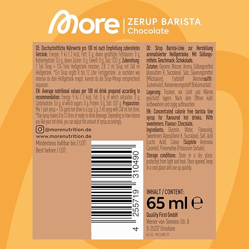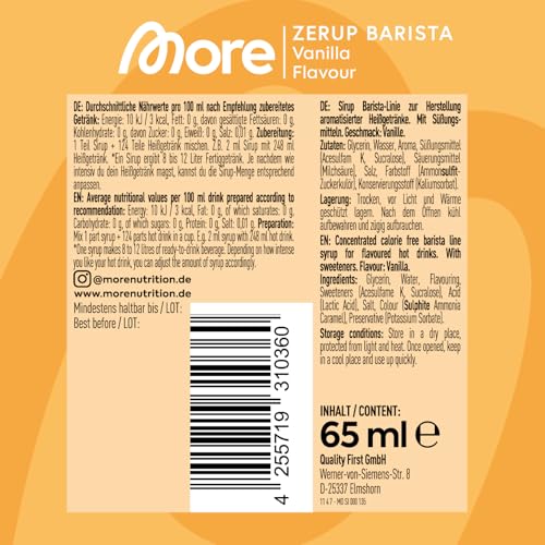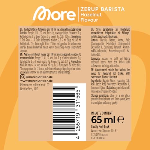 Geeignet für Kaffeeliebhaber und Tee-Enthusiasten, bietet unser Barista Sirup eine qualitativ hochwertige Lösung, um Ihre Heißgetränke zu süßen, ohne auf ungesunde Zutaten zurückzugreifen. Entscheiden Sie sich für einen geschmackvollen und kalorienfreien Genuss – für ein besseres Wohlgefühl im Alltag.
