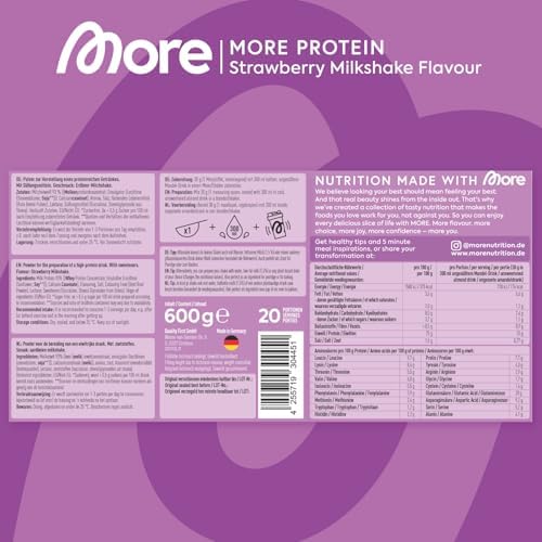 MORE Protein Erdbeer-Milchshake 600 g – Whey & Casein Mix für Muskelaufbau, laktosefrei, hergestellt in DeutschlandMORE Protein Erdbeer-Milchshake 600 g – Whey & Casein Mix für Muskelaufbau, laktosefrei, hergestellt in Deutschland