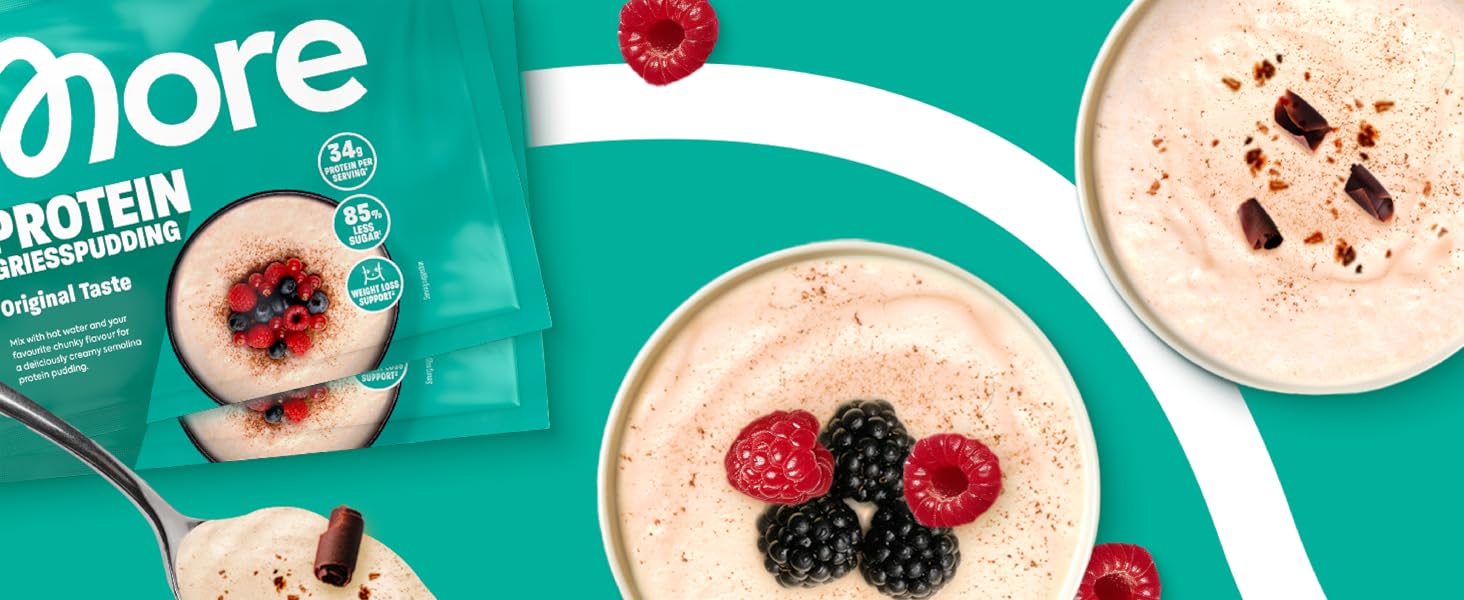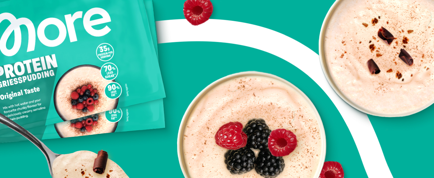 Erlebe den himmlisch cremigen Genuss unseres More Protein Grießpuddings! Mit seiner unglaublich leckeren Rezeptur wird dieser Pudding schnell zu deinem neuen Lieblingssnack, den du unbedingt probieren musst. Die harmonische Kombination aus feinem Grieß und hochwertigen Zutaten sorgt für ein Geschmackserlebnis, das sowohl die Geschmacksnerven als auch das Wohlbefinden verwöhnt.