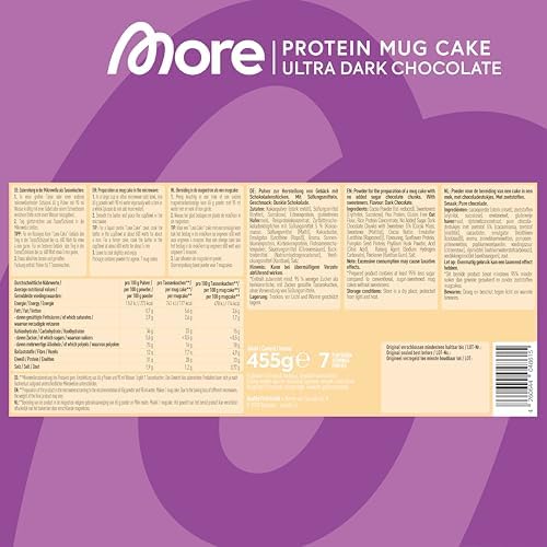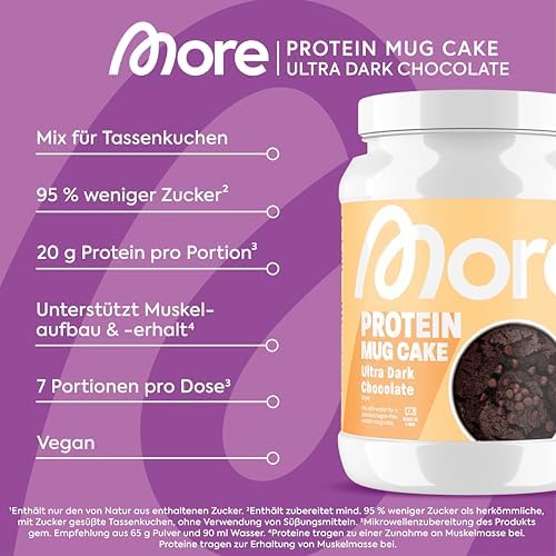 Der More Protein Mug Cake begeistert mit vollmundigem, schokoladigem Geschmack und der perfekten, saftigen Konsistenz. Ein absolutes Must-try für Schokoladenliebhaber, der den Gaumen verwöhnt und gleichzeitig ein gesundes Snack-Erlebnis bietet.