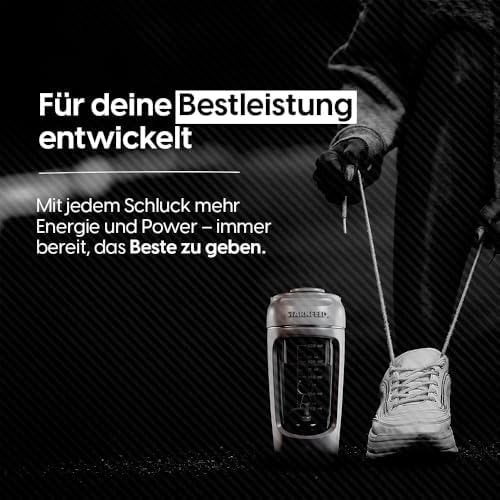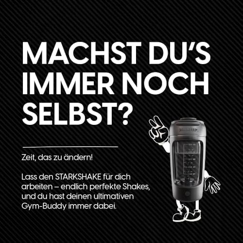 Der STARKSHAKE ist aus BPA-freiem Tritan gefertigt, was ihn nicht nur robust und nachhaltig macht, sondern auch zu einem langlebigen Begleiter für den Alltag und beim Sport. Ob beim Training im Fitnessstudio oder im Büro, dieser Milchshaker ist stets zur Stelle und auch ein tolles Geschenk für Fitnessbegeisterte.
