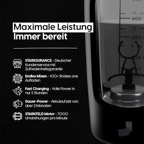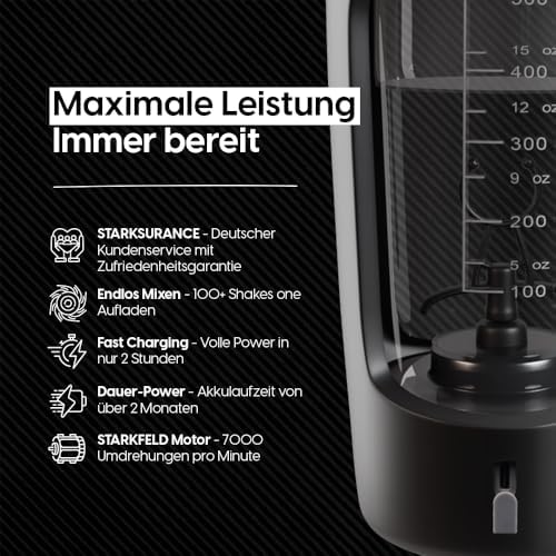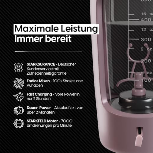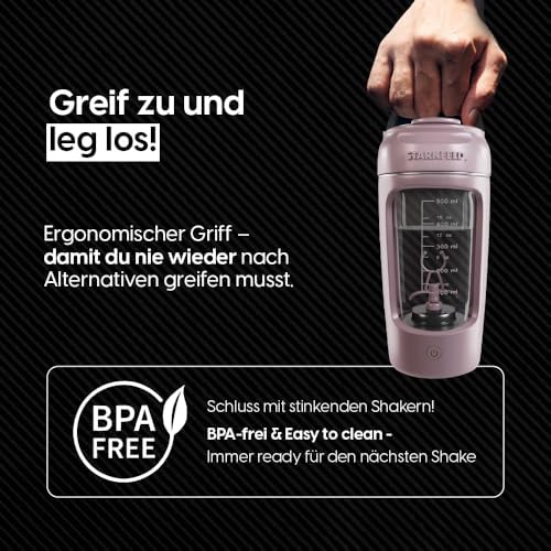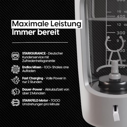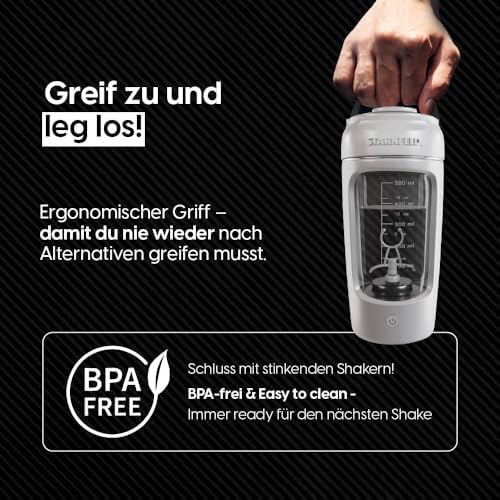 Der STARKSHAKE V3 revolutioniert die Art und Weise, wie du Eiweißshakes und Proteinshakes zubereitest. Innerhalb von nur 15 Sekunden erhältst du ein perfekt gemischtes, klumpenfreies Ergebnis – ganz leise und ohne Mühe. Egal, ob du dich auf dein Training vorbereitest oder einen schnellen Snack für unterwegs benötigst, dieser elektrische Shaker sorgt für eine mühelose Zubereitung.