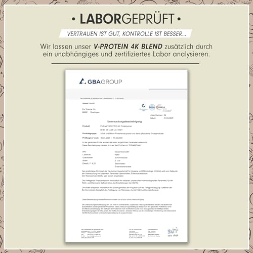 Das V-PROTEIN 4K Blend eignet sich ideal für eine Vielzahl von Anwendungen – sei es als nahrhafter Shake vor oder nach dem Training, als proteinreicher Snack in der Mittagspause oder ganz einfach als geschmackvolle Ergänzung für deine Smoothies. Genieße die Vielseitigkeit und integriere das Pulver in deine tägliche Ernährung, um fit und gesund zu bleiben.