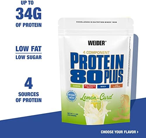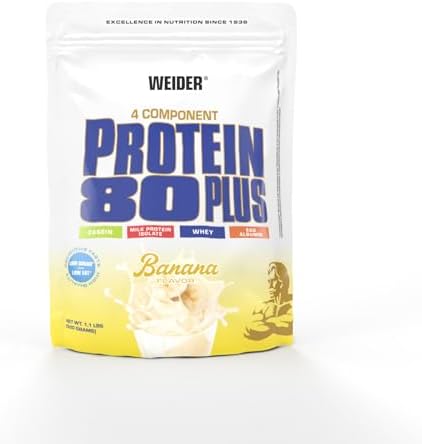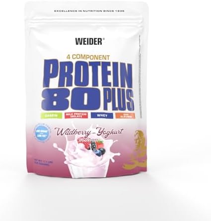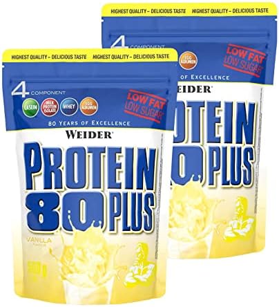 Weider Protein 80 Plus - 4-Komponenten Proteinpulver mit 80% Eiweiß - Cremige Vanille-Shakes für Muskelaufbau & FitnessWeider Protein 80 Plus – 4-Komponenten Proteinpulver mit 80% Eiweiß – Cremige Vanille-Shakes für Muskelaufbau & Fitness